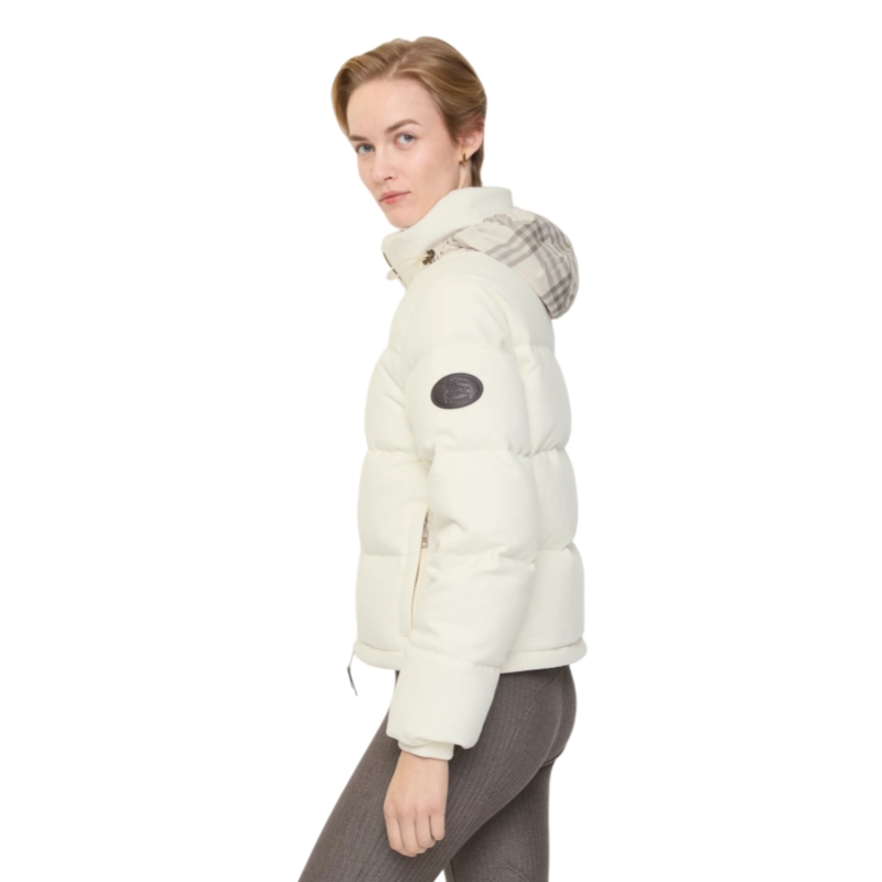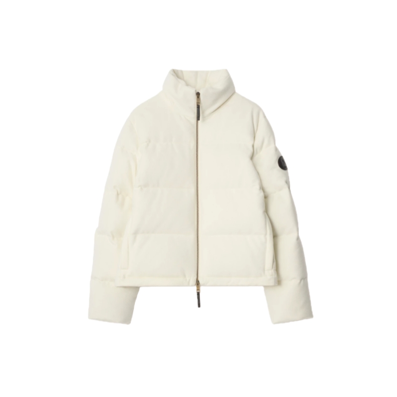 A funnel-neck puffer jacket elevated in cashmere, brushed for a soft finish and filled with goose down and feathers. Cut to a regular fit, the Ambleside features a drawcord hem to adjust the shape and a Burberry Check packaway hood for unpredictable weather. The design is finished with a leather Knight stamp, an archival motif first used in the 1980s.