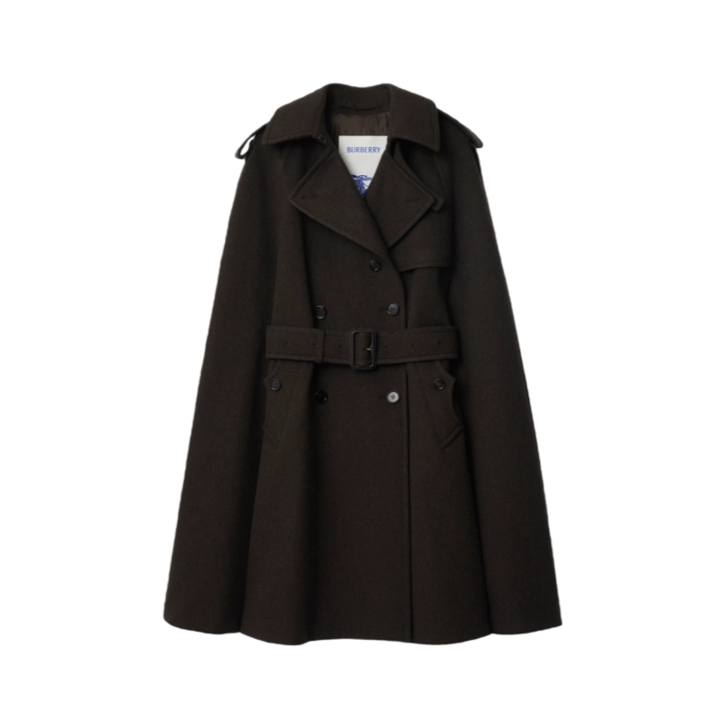 Elements from our iconic trench are reconstructed in the Belmont cape, made in Italy from soft brushed cashmere. The silhouette features epaulettes, a gun flap and B buckle belt, whilst an archival coat inspires the curlicue shape of the pockets. Cut to a regular fit with a tonal check lining.