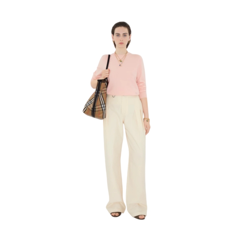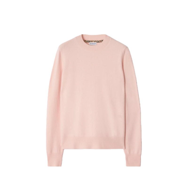 A crew-neck sweater in cashmere blend jersey, knitted to a regular fit. The lightweight style features an embroidered tonal Equestrian Knight Design and is lined at the collar with Burberry Check.
