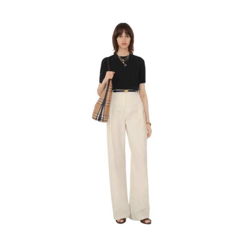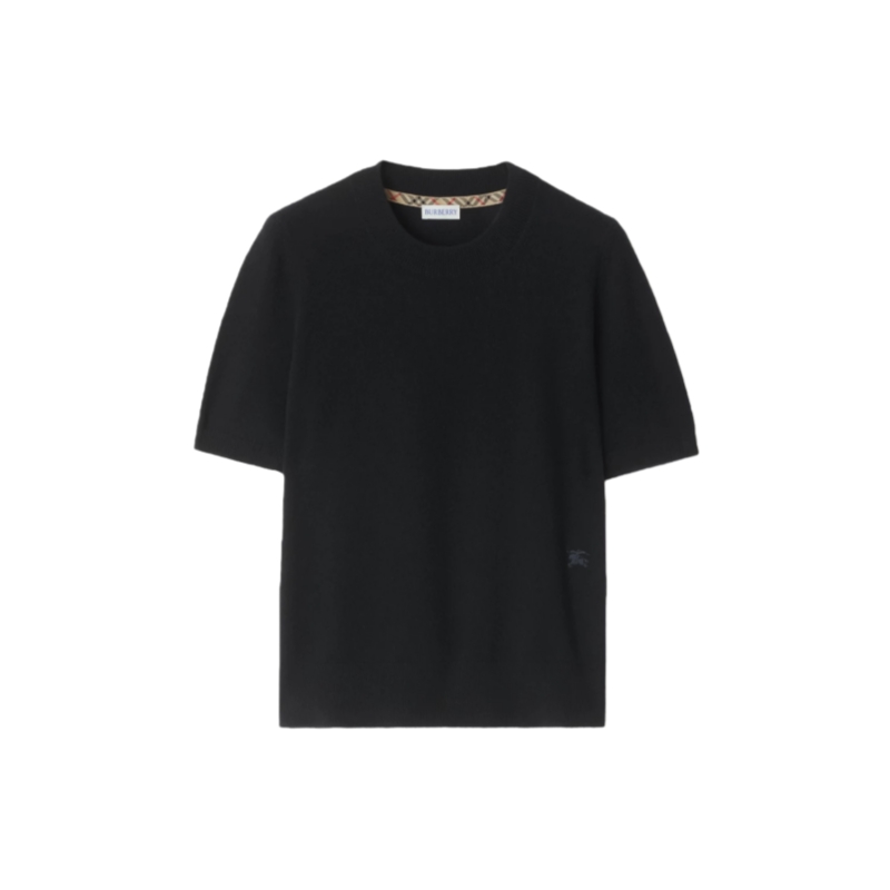 A short-sleeved top in cashmere blend jersey, knitted to a regular fit. The lightweight style features an embroidered Equestrian Knight Design and is lined at the collar with Burberry Check.