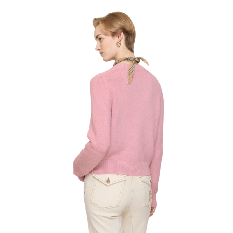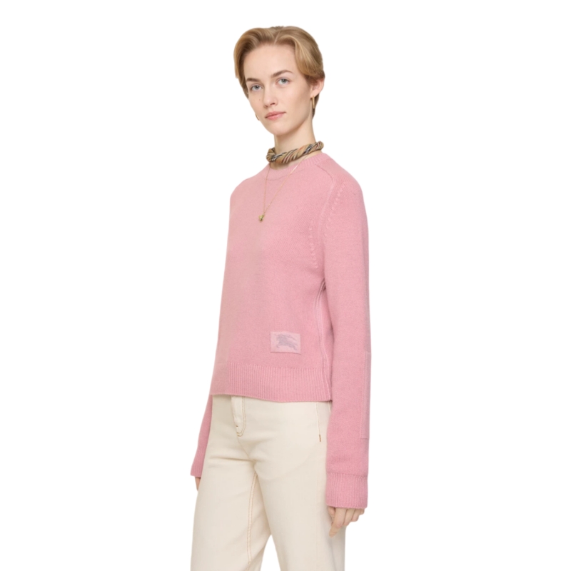 A sweater made from ultra-soft cashmere with a hint of stretch, cut to a regular fit. The crew-neck style is knitted with tonal elbow patches, chain-stitching at the shoulders and a contrasting Equestrian Knight Design.