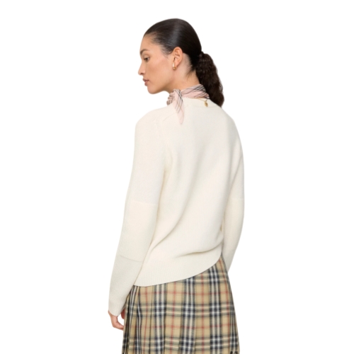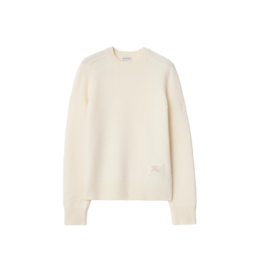 A sweater made from ultra-soft cashmere with a hint of stretch, cut to a regular fit. The crew-neck style is knitted with tonal elbow patches, chain-stitching at the shoulders and a contrasting Equestrian Knight Design.