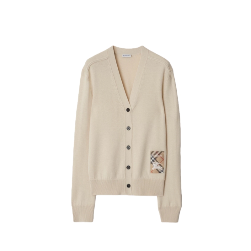 A cardigan in wool, knitted to a regular fit. Reworking the label from our signature trench coats, the V-neck style features an appliquéd patch woven with the Burberry Check, logo and Equestrian Knight Design.