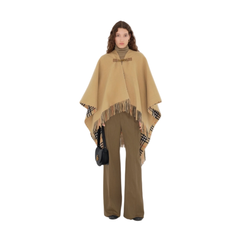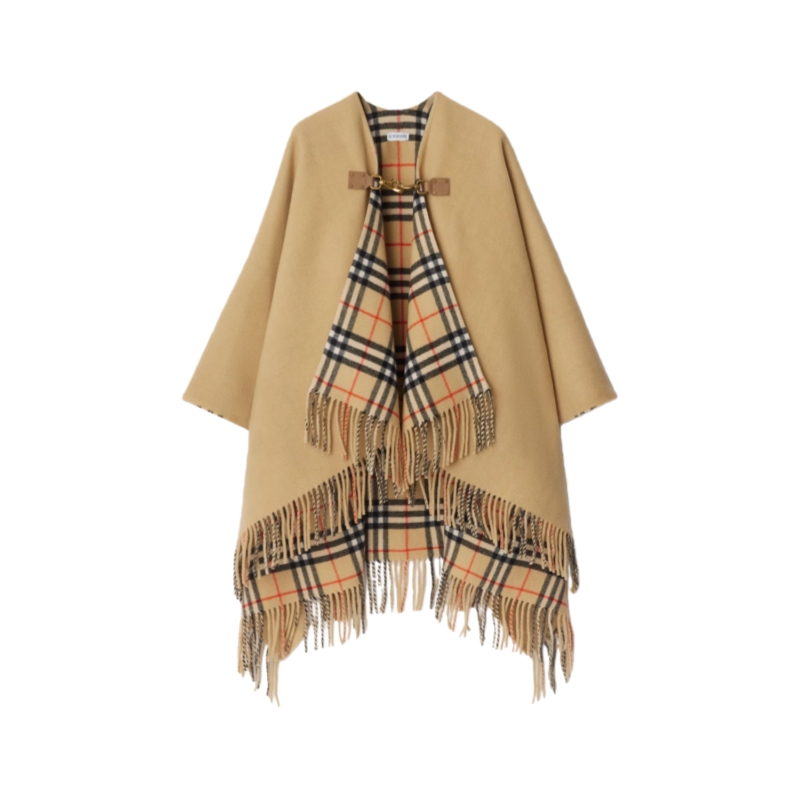 A wool cape made in Italy, woven with a Burberry Check lining. The style is secured with a horse-shaped clip inspired by our Equestrian Knight Design. Part of Burberry Classics, wardrobe foundations with a unique Burberry slant.