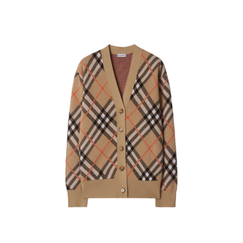 A cardigan in a lightweight wool mohair blend, knitted with the Burberry Check. The V-neck style is cut to a relaxed fit. Part of Burberry Classics, wardrobe foundations with a unique Burberry slant.