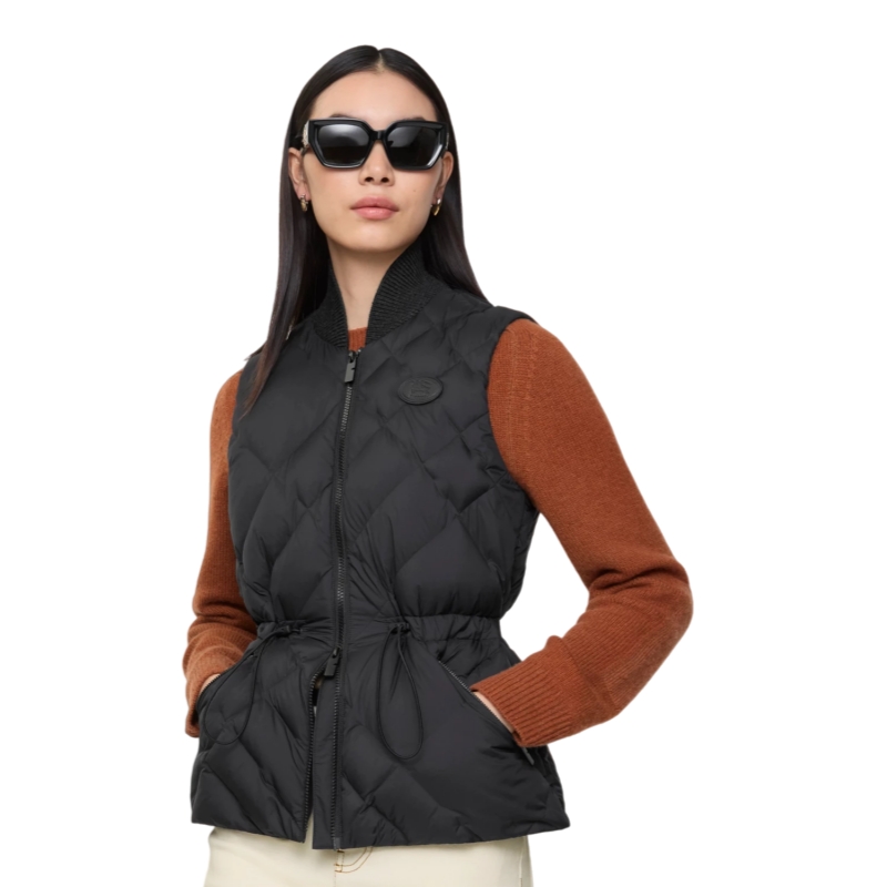 A gilet in lightweight water-resistant nylon detailed with our check-stitch – a new take on quilted stitching inspired by the iconic house code. The style is knitted with a tonal wool-blend collar and finished with an appliquéd leather Knight stamp, an archival motif first seen on Burberry bags in the 1980s. Cut to a regular fit that cinches at the waist and filled with goose down and feathers for warmth.