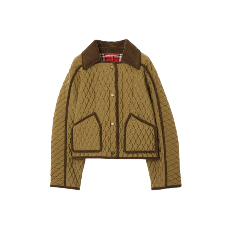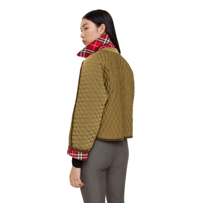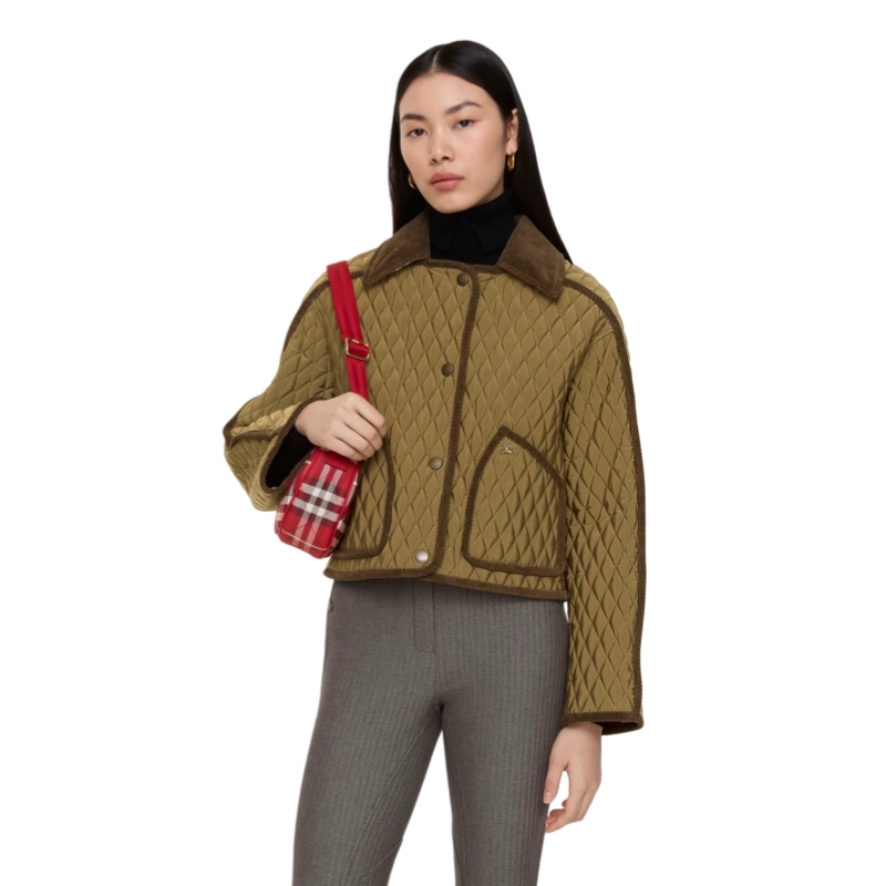Synonymous with the British countryside, the quilted Floriston jacket is reshaped to a boxy silhouette in a lightweight changeant nylon – an archive-inspired fabric woven with contrasting yarns for an iridescent effect. The design is cut to a relaxed fit with raglan sleeves and finished with tonal corduroy trims. Lined with the Burberry Check in a seasonal crayon red, created as part of our Year of the Horse capsule.