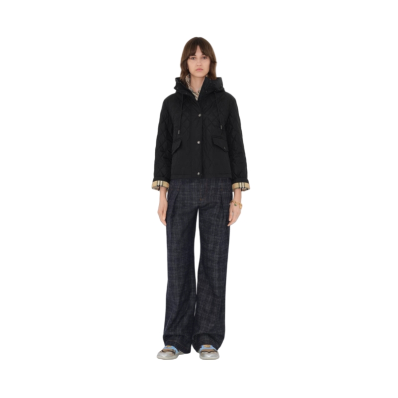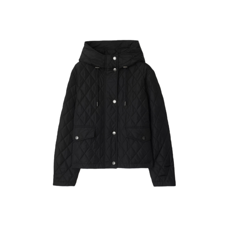 A quilted jacket made from lightweight nylon, cut to a regular fit with a drawcord hood. The cropped style is lined with Burberry Check cotton twill in our signature sand colourway.