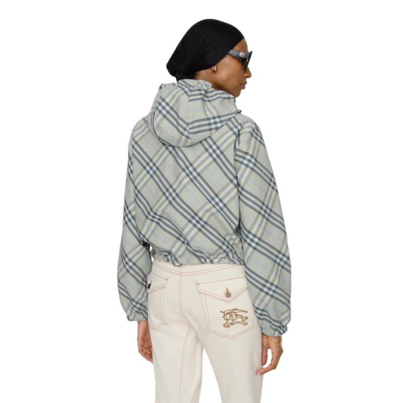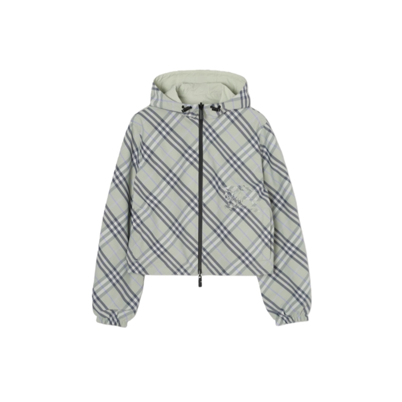 A lightweight jacket in Burberry Check twill, reversing to a solid colour in nylon. The design is cut to a relaxed fit with a cropped hem and is appliquéd on both sides with our Equestrian Knight Design.