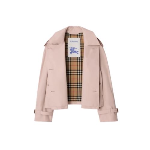 A cropped jacket inspired by our iconic trench, made from water-resistant tropical gabardine with a seasonal sugar pink hue. The lightest of our signature fabrics, tropical gabardine was developed by our founder Thomas Burberry for warmer climates. Inside is Burberry Check cotton in archive beige, used to line our coats since the 1920s. Crafted in Castleford, Yorkshire and tailored to a relaxed fit.