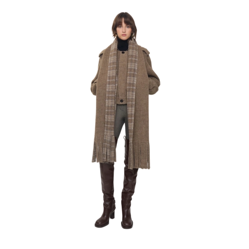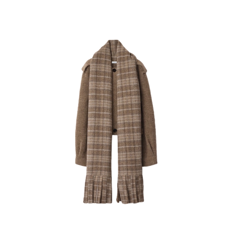 A jacket made in Italy from a double-faced llama hair and wool blend. Debuted on the Burberry Winter 2025 runway, the collarless style features epaulettes inspired by our signature outerwear and a detachable check scarf with chunky fringing. Cut to a regular fit with buckled side straps to adjust the silhouette.