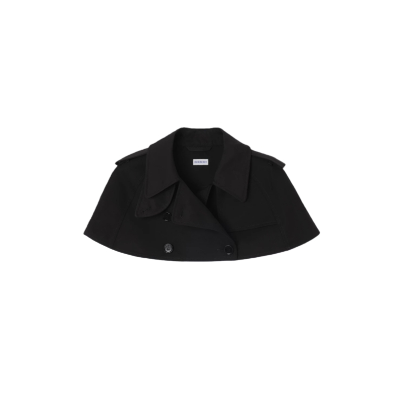 A capelet crafted in Castleford, Yorkshire from shower-resistant cotton gabardine. Inspired by an archival silhouette, the super-cropped style features signature rainwear details, including a gun flap, epaulettes and a shield-shaped throat latch. A statement piece for layering.