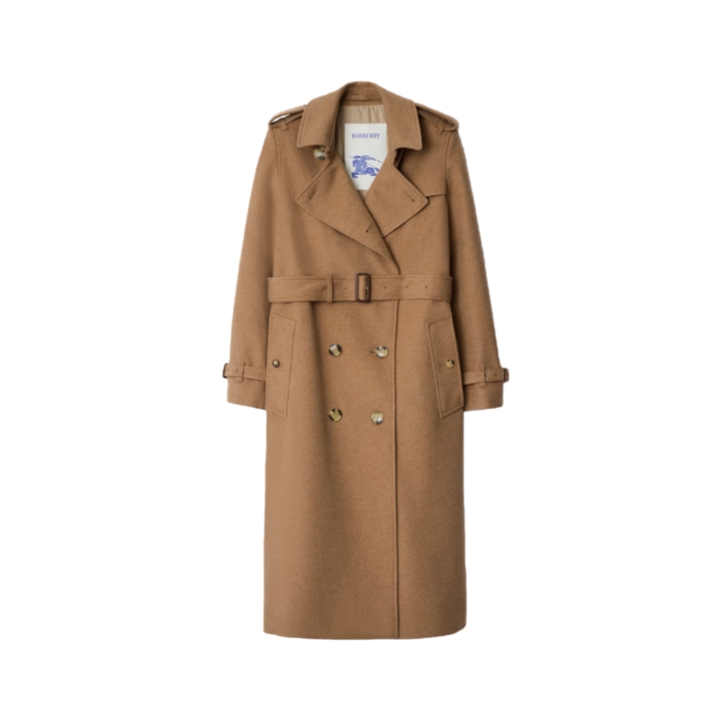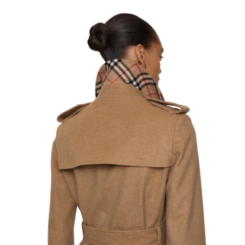 Our signature Kensington trench coat tailored from technical cashmere – designed to help you stay comfortable in the elements. The fabric is brushed for a soft finish and bonded to a thin membrane with a tonal chevron lining. Burberry Check wool cotton lines the undercollar. The style is cut to a regular fit with set-in sleeves.
