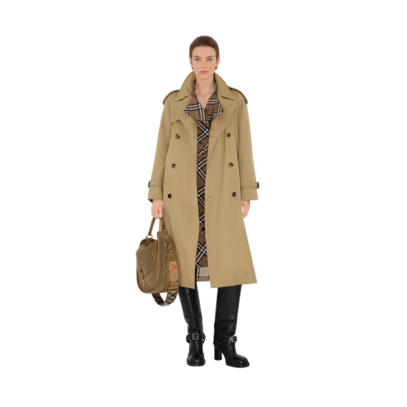 A trench coat made in England from shower-resistant cotton gabardine and lined in Burberry Check. The Castleford is tailored to a regular fit with raglan sleeves.