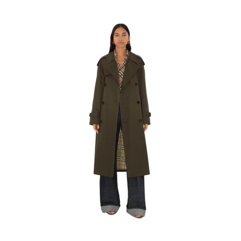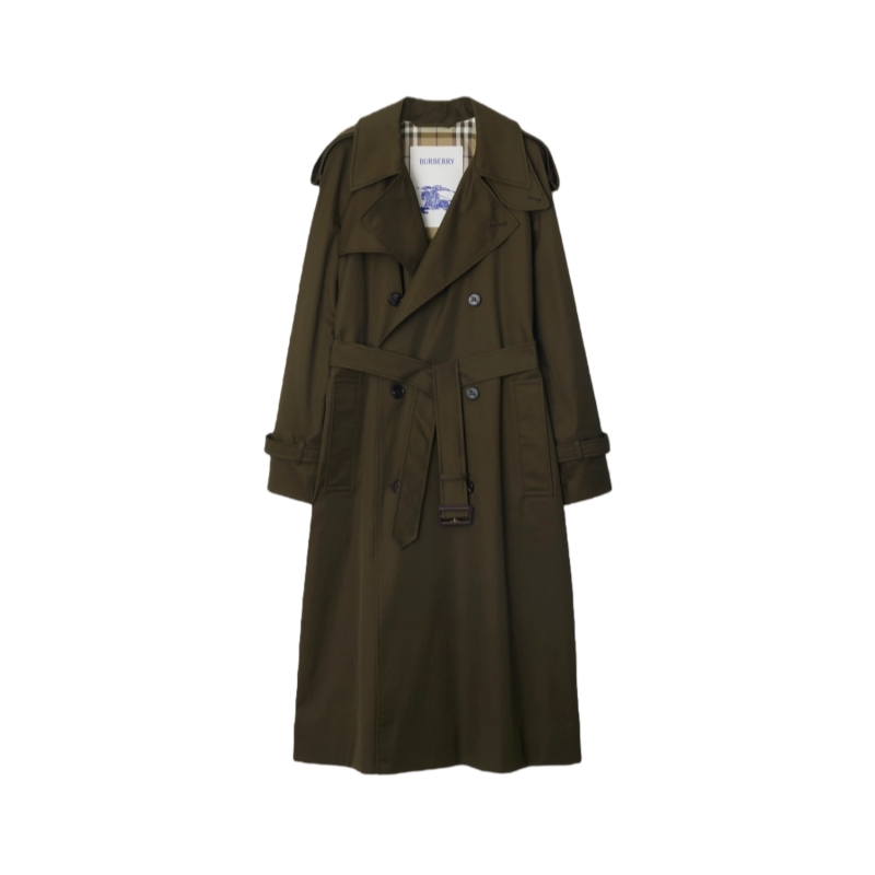 A trench coat made in England from shower-resistant cotton gabardine and lined in Burberry Check. The Castleford is tailored to a regular fit with raglan sleeves.