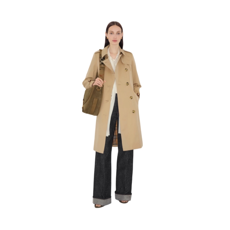A refined take on Burberry’s rainwear heritage, the Chelsea trench coat is cut close to the body for a clean, modern silhouette. The fitted style is made in England from shower-resistant cotton gabardine and detailed with leather-wrapped buckles. Tailored to a slim fit, the double-breasted design has a structured shoulder line, narrow sleeves, and a defined waistline. Wear it closed using the belt or open over dresses and separates to showcase the iconic check lining.