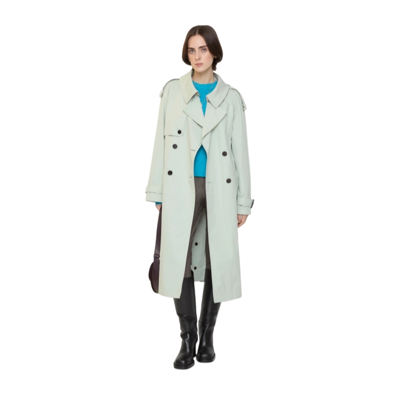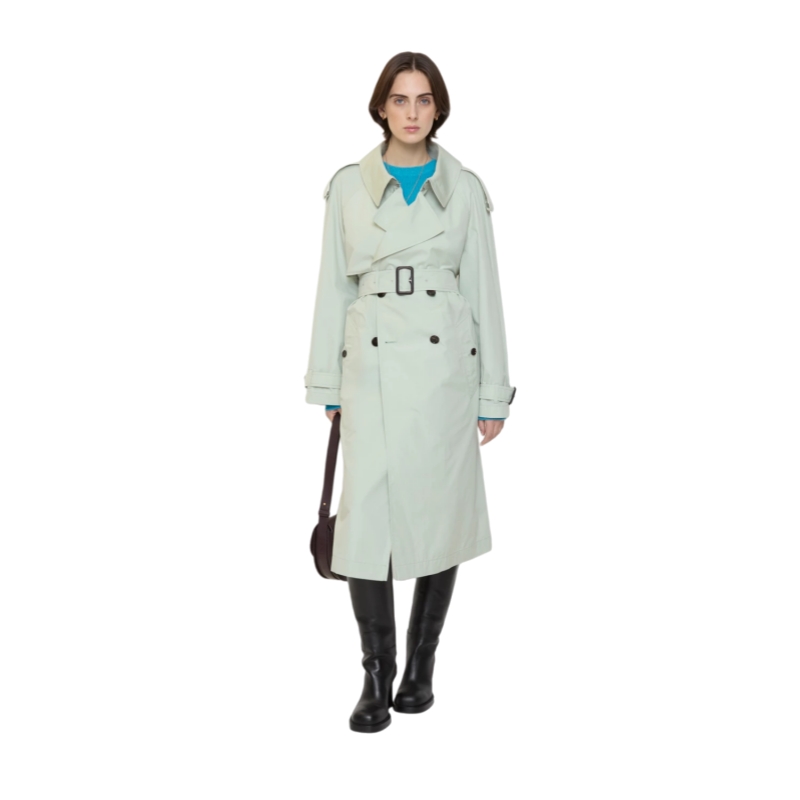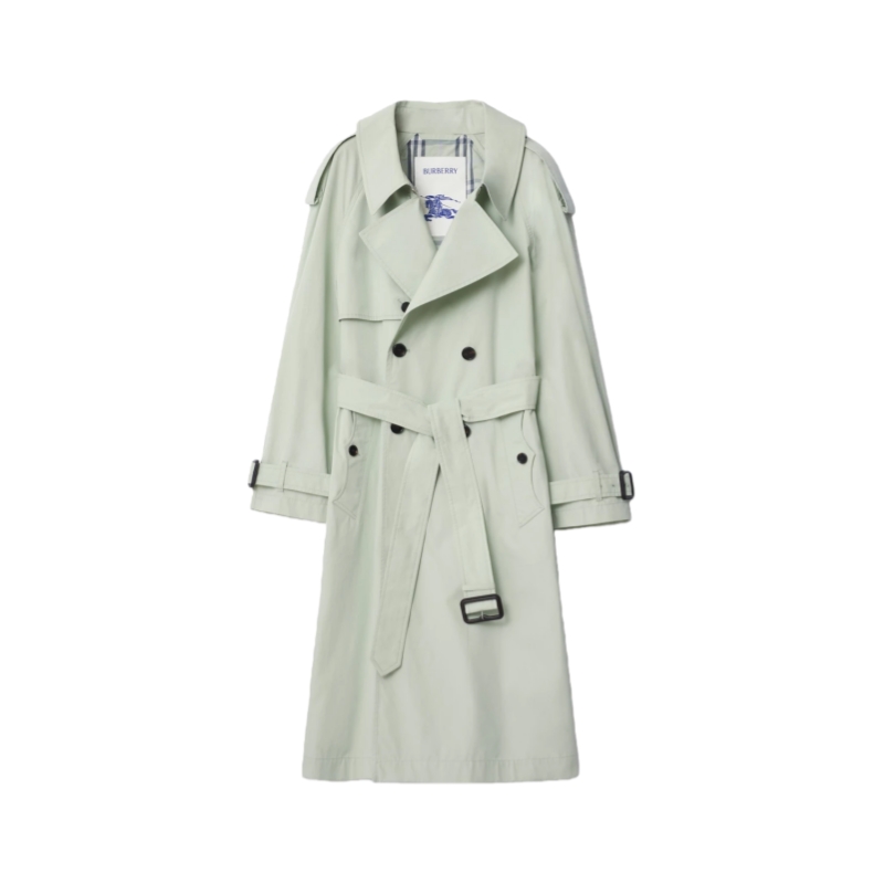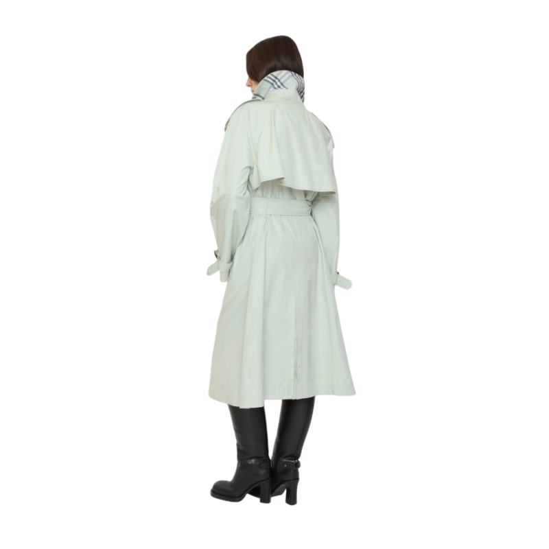 Adding volume to our signature rainwear, the Fitzrovia trench coat is cut from a structured cotton poplin canvas. The A-line style is shaped to a relaxed fit, featuring wider sleeves and a fuller skirt. Raglan construction gives a softer line at the shoulders while an archival trench inspires the curlicue shape of the pockets. Inside is Burberry Check cotton in a seasonal seafoam green colourway.