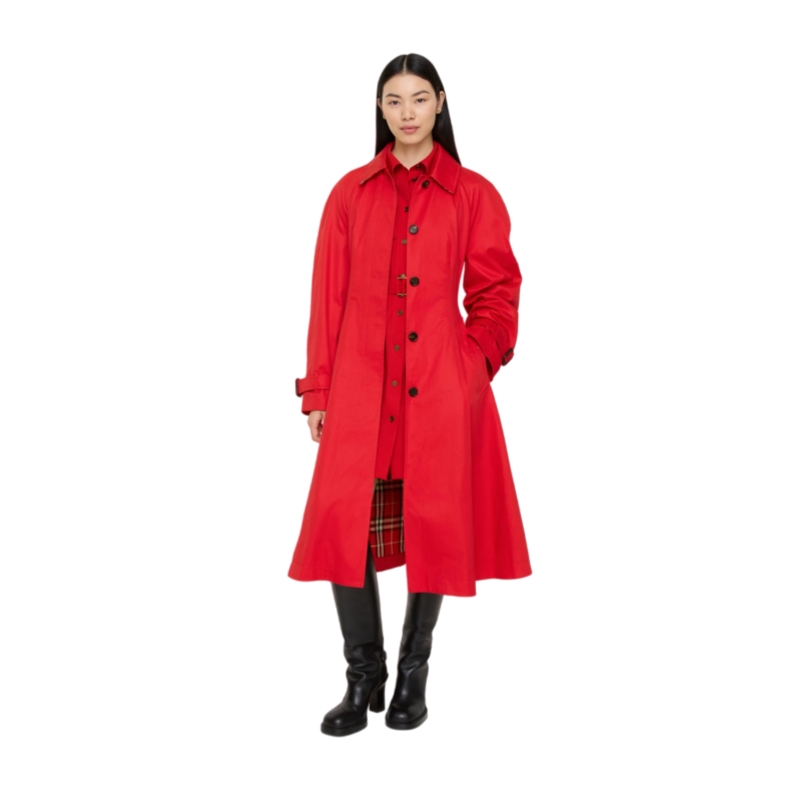 Evolving our signature rainwear silhouettes, the Ellingham fit-and-flare car coat is cut to an A-line shape with wider sleeves and a fuller skirt. Tailored from water-resistant gabardine and treated for a soft finish, the design features raglan sleeves for a relaxed look and curlicue-shaped pockets, inspired by an archival trench. Inside is Burberry Check cotton lining in coordinating crayon red.