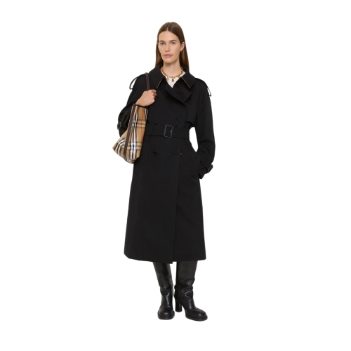 Adding volume to our signature rainwear, the Fitzrovia trench coat is made in Yorkshire from water-resistant gabardine, treated for a soft finish. The A-line style is cut to a relaxed fit, featuring wider sleeves and a fuller skirt, for a feminine silhouette. Raglan construction gives a softer line at the shoulders while an archival trench inspires the curlicue shape of the pockets. Inside is Burberry Check cotton lining in our signature sand beige.