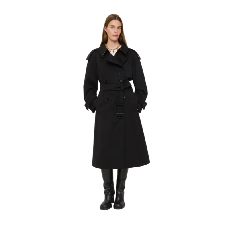 Burberry Women Long Gabardine Fitzrovia Trench Coat Black 81171421