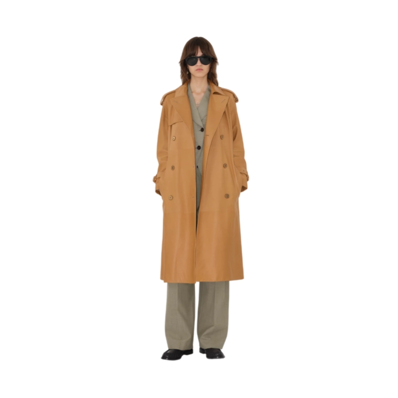Our signature Castleford trench coat reworked in supple plongé leather. The Italian-made style is cut to a regular fit with raglan sleeves. The design is fully lined and features logo-engraved metal buttons with an antique finish.