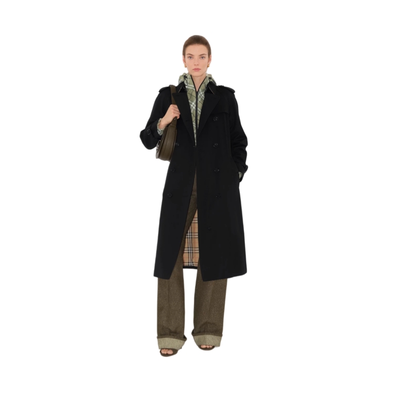 Inspired by the original Burberry trench coat, the Waterloo is cut to a long length with soft, curved shoulders. Crafted in England from shower-resistant cotton gabardine, the double-breasted silhouette is finished with a belted waist, Burberry Check lining, and archive details. Its heritage proportions are designed for fluid movement, making the style ideal over tailoring and layers.