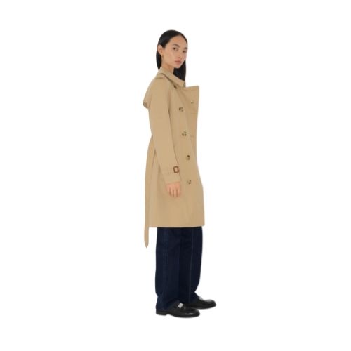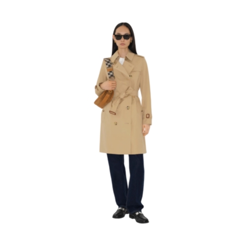 Defined by classic proportions, the Kensington trench coat is crafted for timeless elegance. Made in England from shower-resistant cotton gabardine, woven at the Burberry Mill, the coat is lined with the iconic Burberry Check and finished with heritage details. It is tailored to a regular fit with a structured shoulder, while added ease through the body allows for effortless layering.