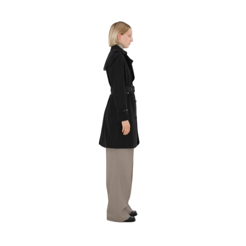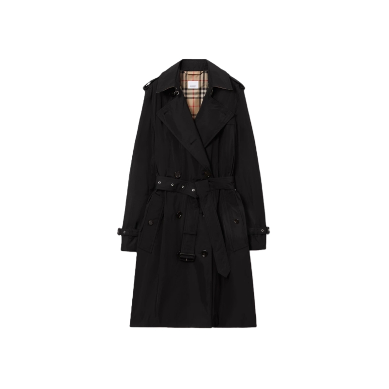 A trench coat in a lightweight fabric. Inside is Burberry Check cotton, used to line our coats since the 1920s. The Kensington is cut to a regular fit with set-in sleeves.