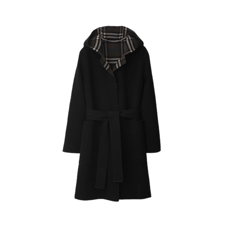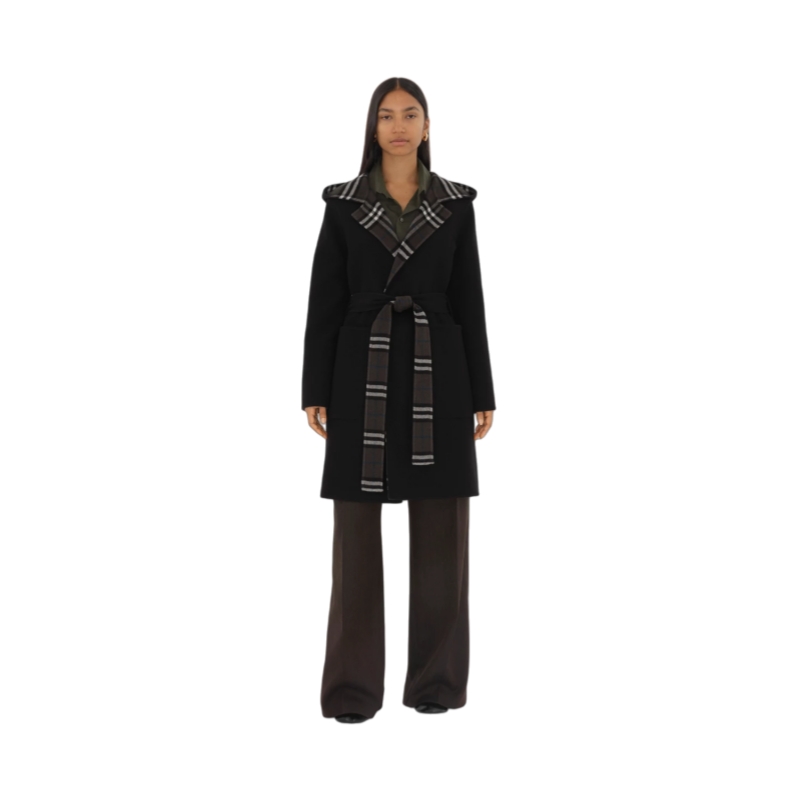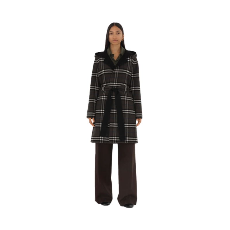 A hooded car coat made in Italy from wool. The reversible design switches from a solid colour to the Burberry Check. Softly tailored to a regular fit with a belt to adjust the shape.