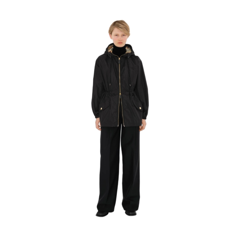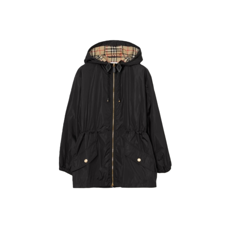 A lightweight hooded jacket, partially lined with the Burberry Check in signature archive beige. The design features leather trims and is cut to a relaxed fit with a drawcord to adjust the waist.