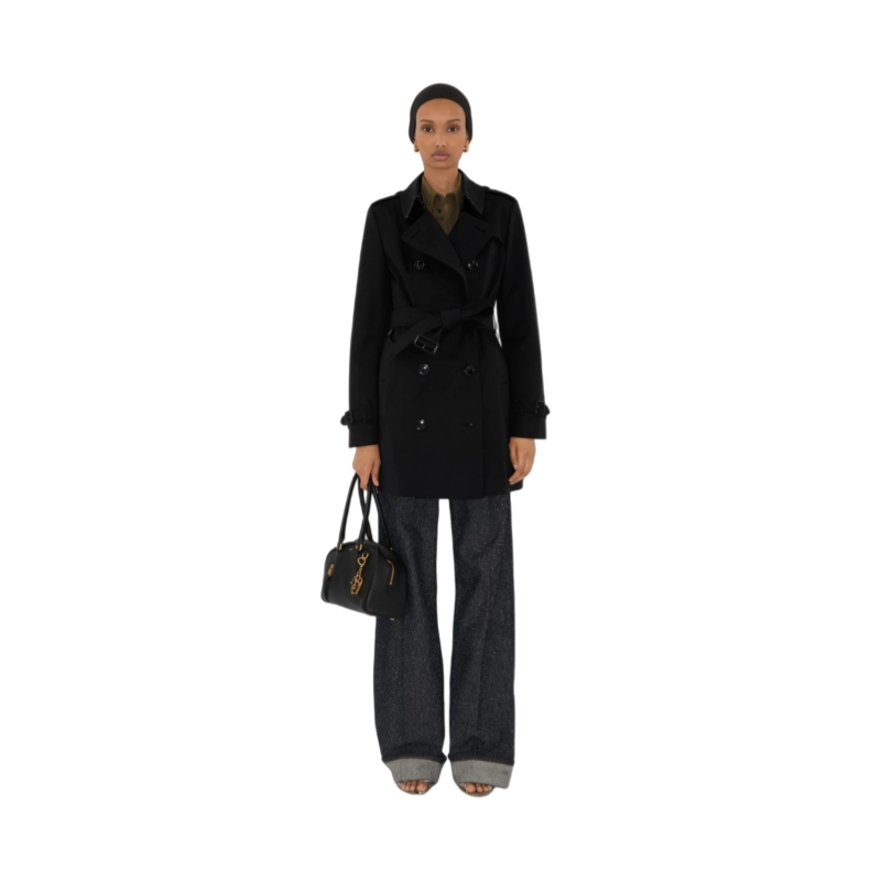 The iconic Burberry trench coat, made in England from shower-resistant cotton gabardine. Inside is Burberry Check cotton, used to line our coats since the 1920s. Part of the Heritage Collection, the Chelsea is cut to a slim fit with set-in sleeves.