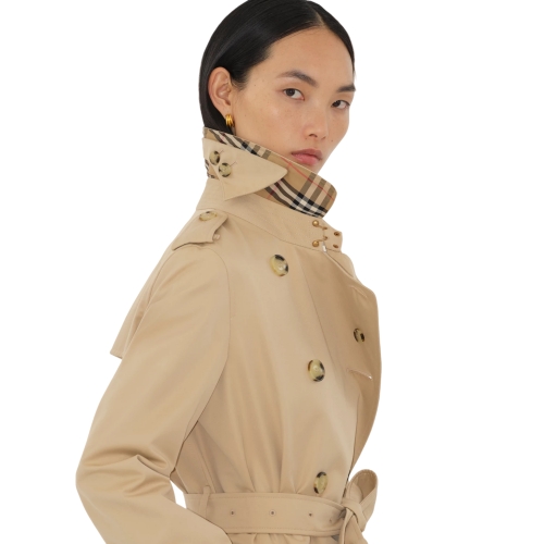 Defined by classic proportions, the Kensington trench coat is crafted for timeless elegance. Made in England from shower-resistant cotton gabardine, woven at the Burberry Mill, the coat is lined with the iconic Burberry Check and finished with heritage details. It is tailored to a regular fit with a structured shoulder, while added ease through the body allows for effortless layering.