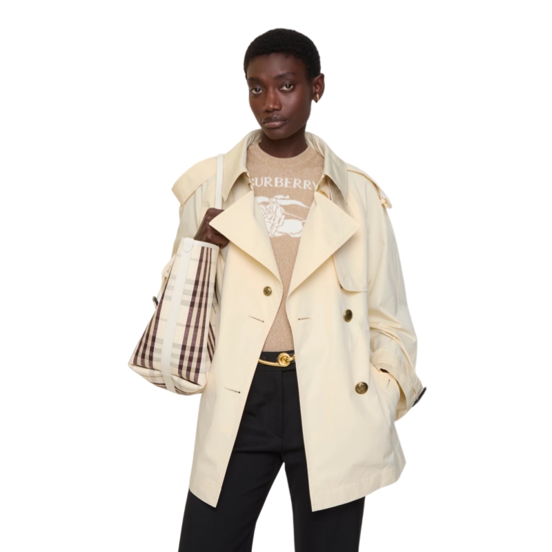 Burberry Women Short Lightweight Cotton Fitzrovia Trench Coat Ceramic white 81187051