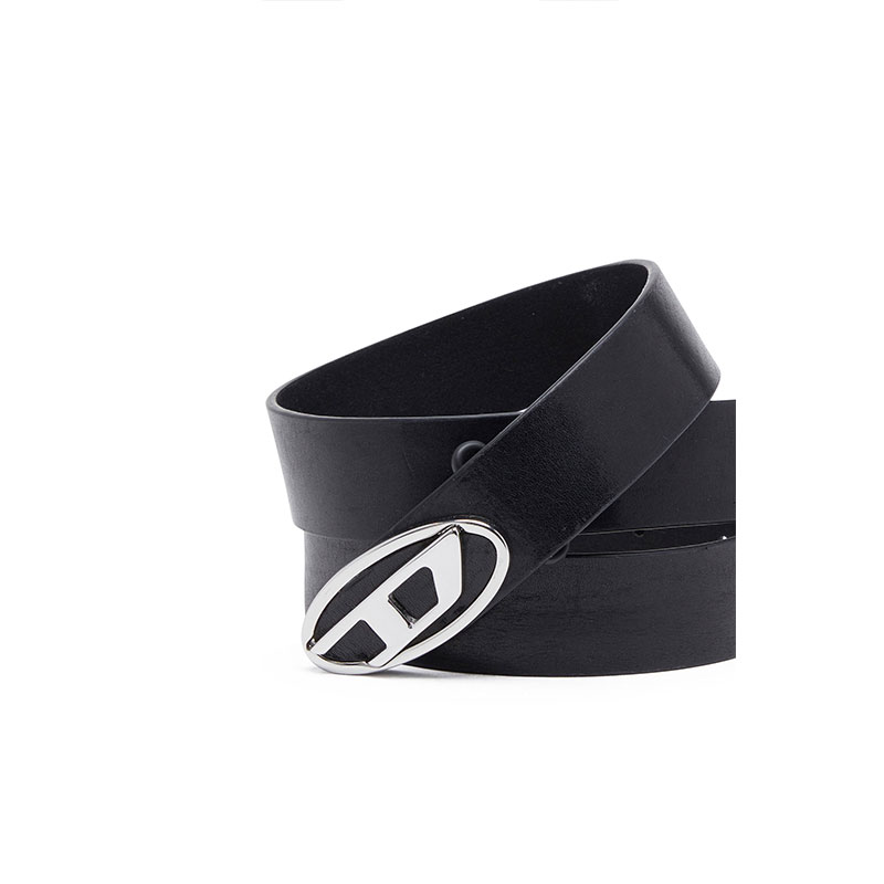 Diesel Men 3.9cm leather belt with D buckle Black X08516PR666