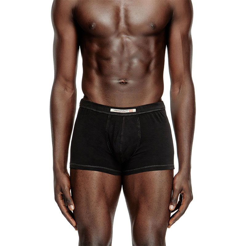 Men's boxer briefs cut from stretch cotton. This pack of two includes a white and treated black pair, each detailed with the iconic logo flag traditionally seen on the small pocket of Diesel jeans.