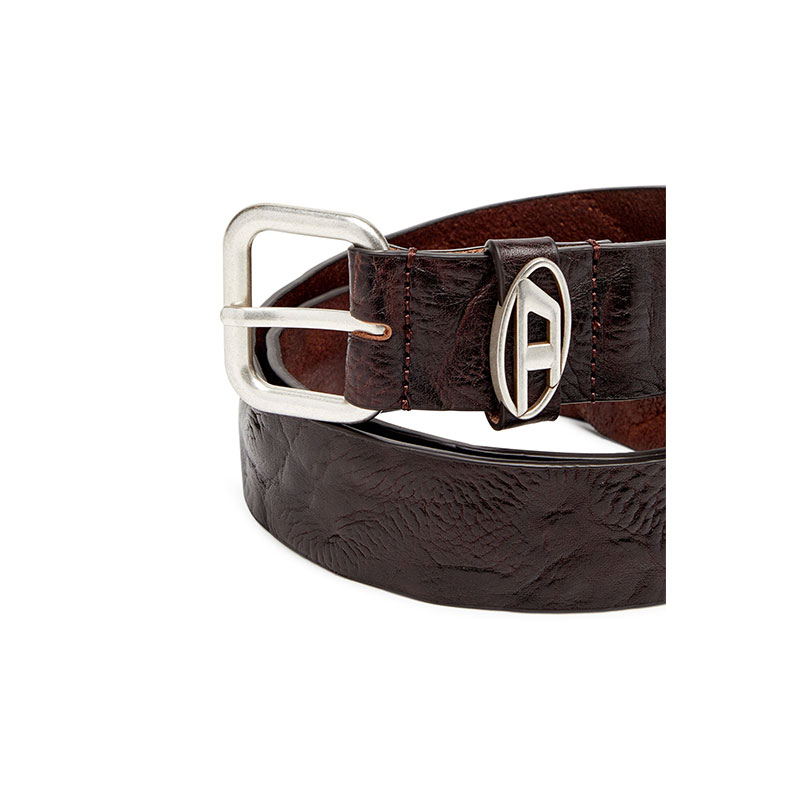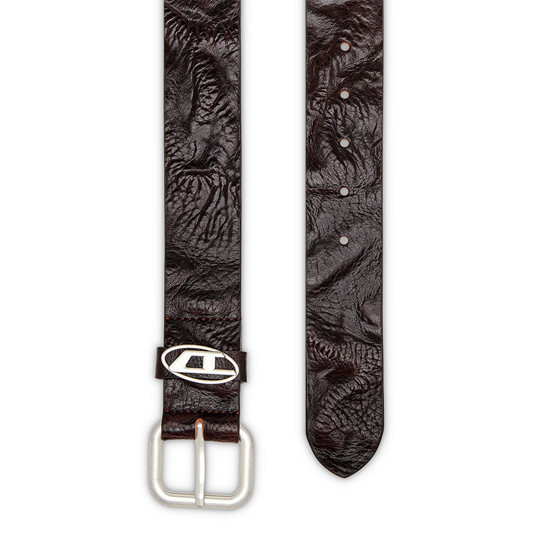 An all-gender design, this brown belt is crafted from soft leather with a tactile wrinkled finish, and fastens with a polished silver-tone buckle. Note the metal Oval D plaque embellishing the loop.