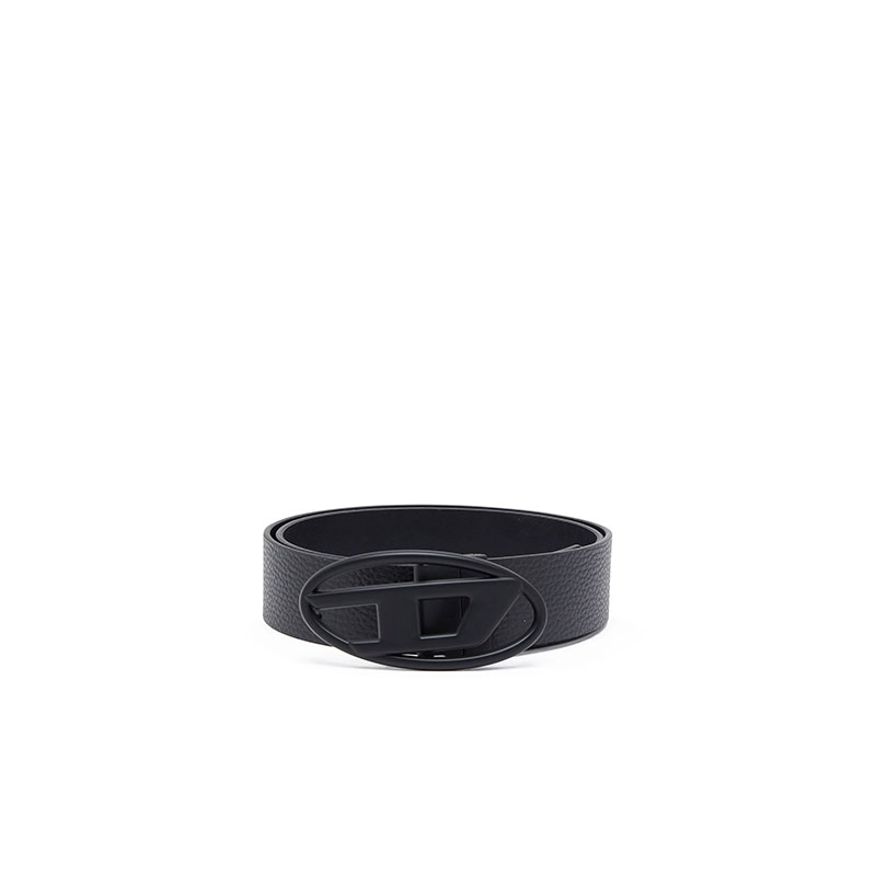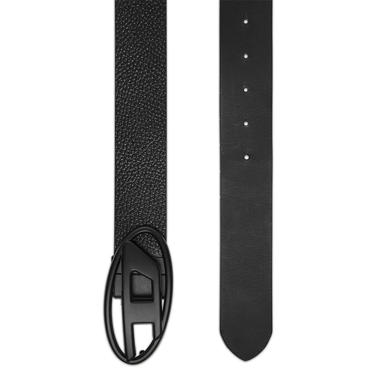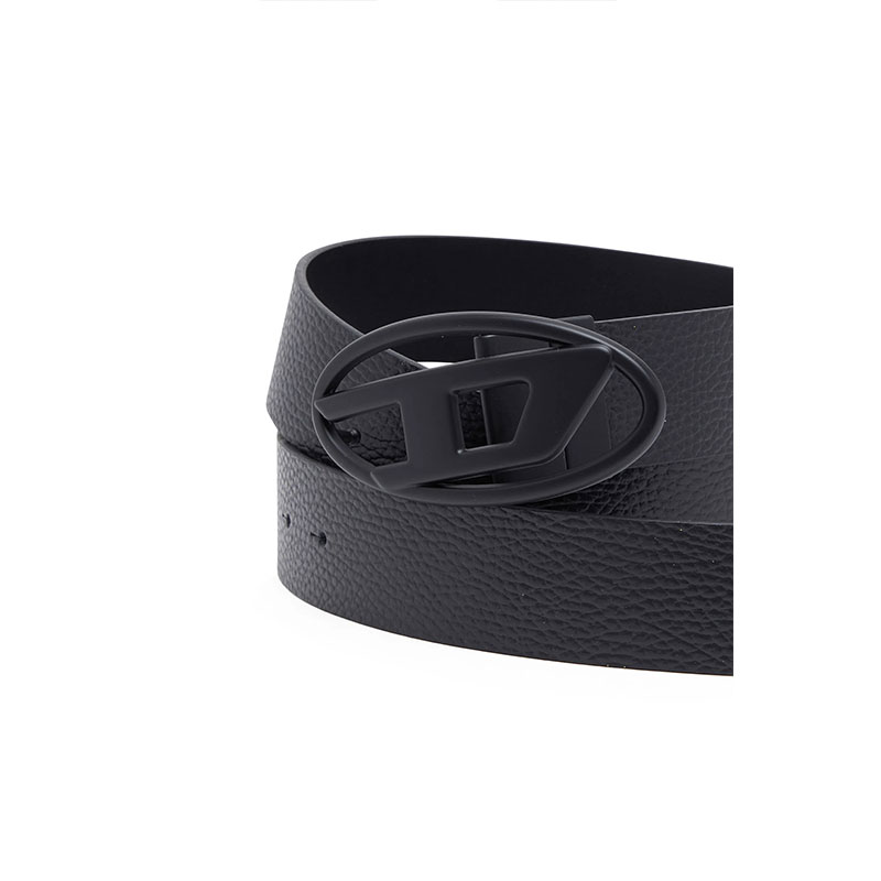 Crafted from Italian leather, this men’s reversible belt can be worn on either the smooth or textured grainy side. It has a classic black hue and a large metal buckle cast in the shape of the Oval D logo.