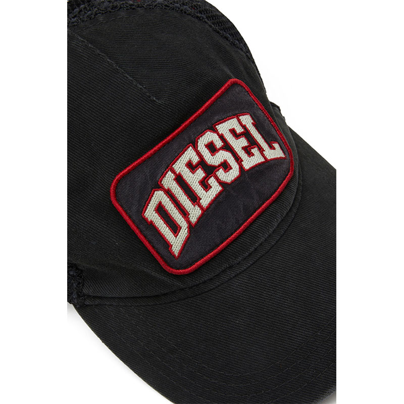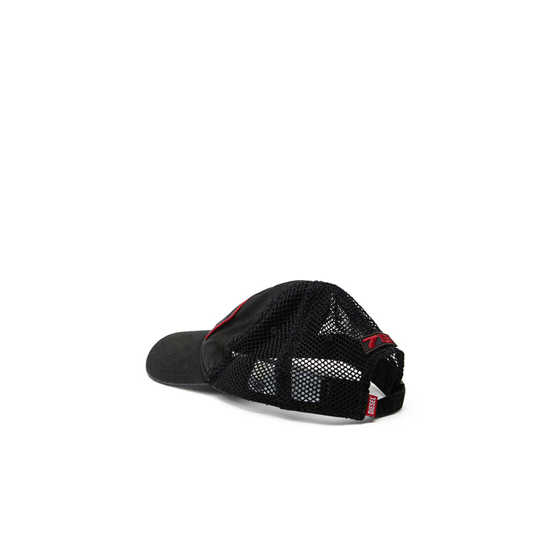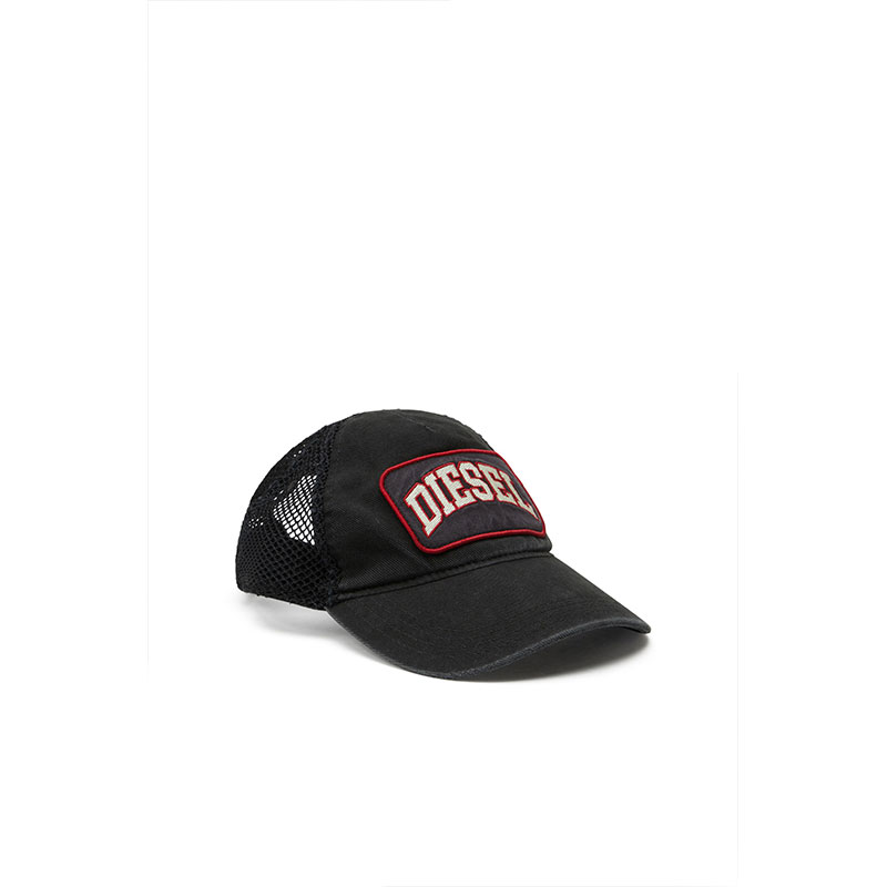 The contrast of fishnet mesh and cotton gabardine add a dynamic feel to this men's baseball cap. Patch details echo a laid back aesthetic.