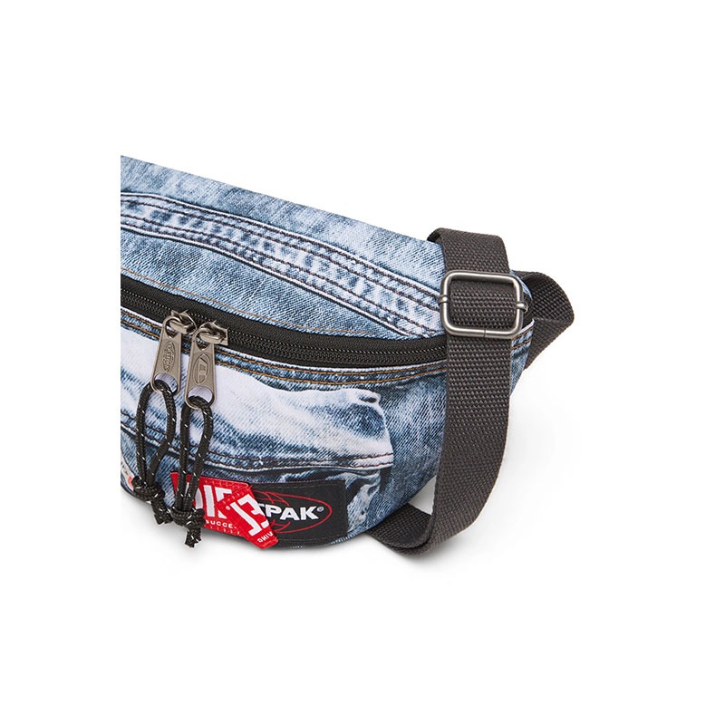 This unisex belt bag features the iconic silhouette of Eastpak’s Springer, reimagined with a hyper-realistic digital print of Diesel’s denim. This trompe l'oeil effect, a subversion of classic codes, has become a signature of Diesel’s creative director Glenn Martens. This compact bum bag is finished with a co-branded ‘peel-off’ jacquard patch.