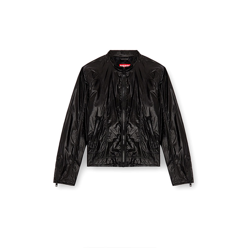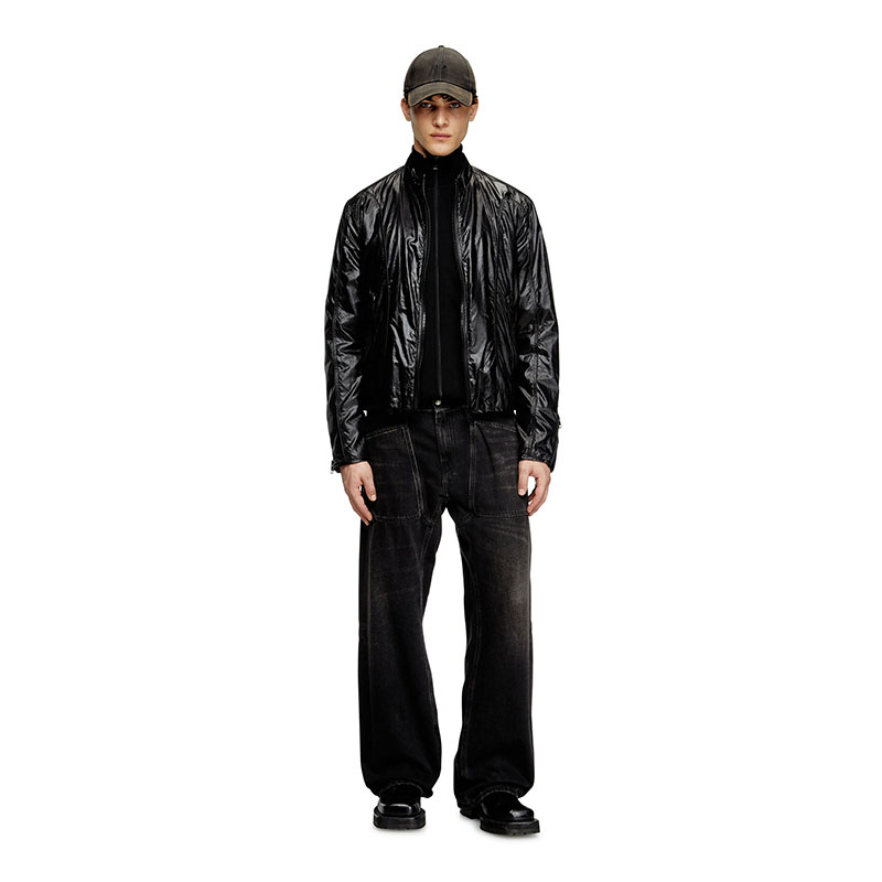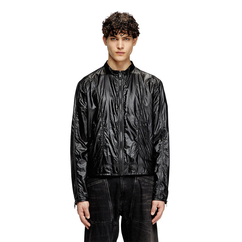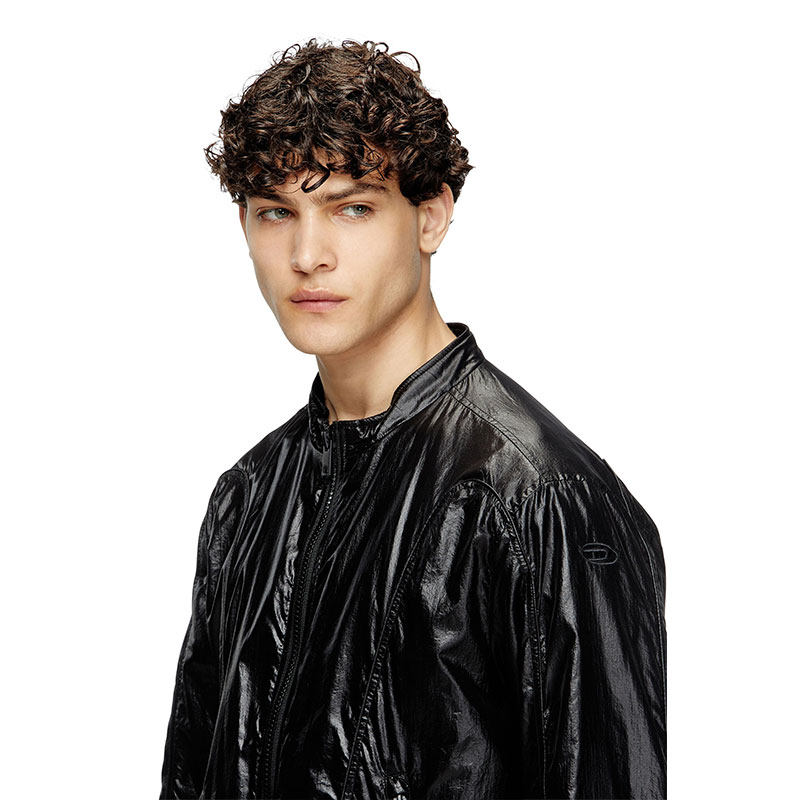 Made using recycled materials, this men’s biker jacket reworks a racer silhouette in panels of chintzed micro ripstop, characterised by a shiny, glazed finish. Cut for a regular fit, it's detailed with piping and has a mesh-lined interior. A discreet Oval D logo accents the sleeve.