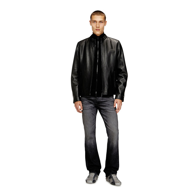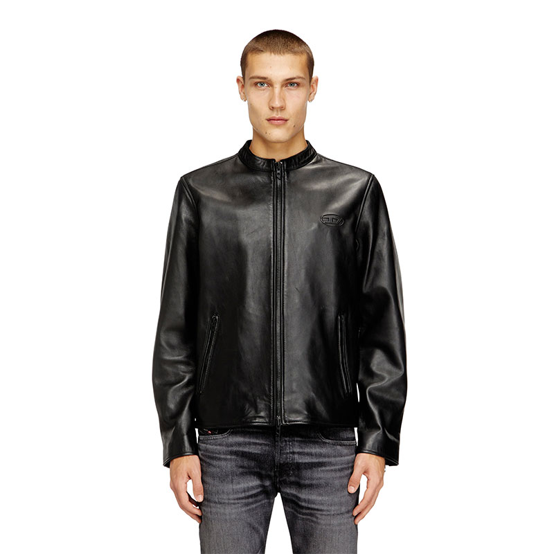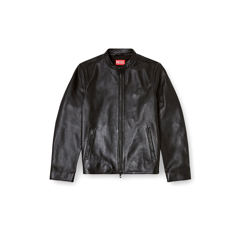 An all-black design, this men's jacket is crafted from leather that’s tumbled and waxed for suppleness and lustre. Cut in a clean biker silhouette with a minimal collar and classic zip hardware, it features an embossed Oval D logo at the chest. A lining ensures easy layering.