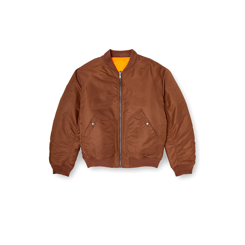 Men's nylon bomber jacket, cut from certified recycled nylon. It's lightly padded for warmth, and detailed with a tonal Oval D outline embroidered on the back and slightly ruched seams along the sleeves.