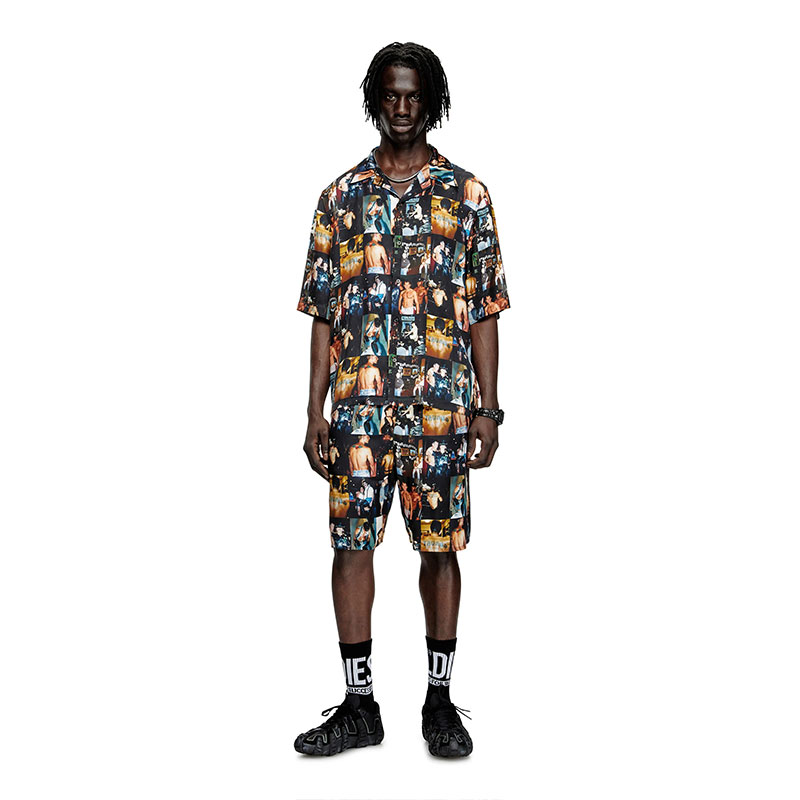 Diesel Men Bowling shirt with graphic prints Black P015490SPBX