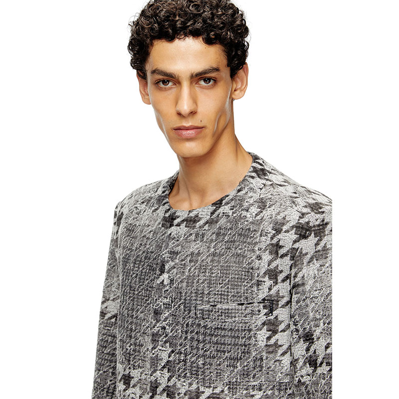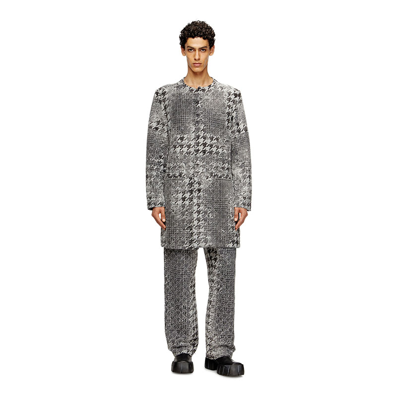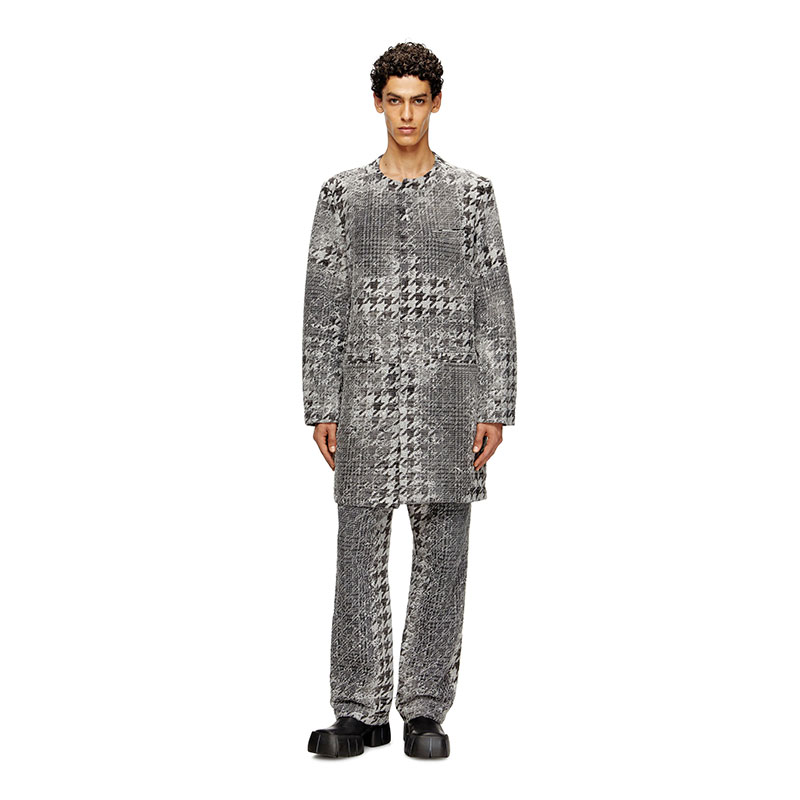 Diesel Men Coat in Prince of Wales jacquard denim Black/White A220320CEBN