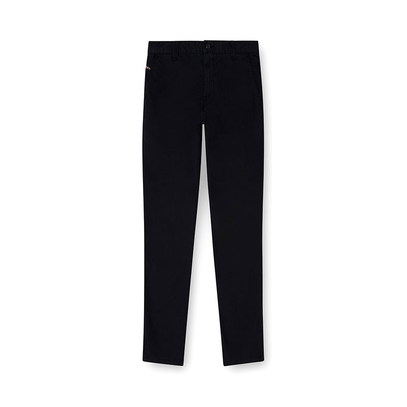 Chino pants made of stretch cotton with a stonewash treatment for a soft finish. They feature a zip on the front fly and a four-hole button at the waist. The design is fitted with front pockets and back welt pockets with button closure. A utility-inspired pocket detail on the back of the waistband completes the garment, while the logo label is visible on the front.