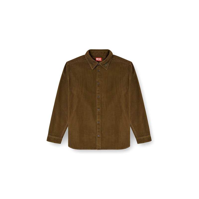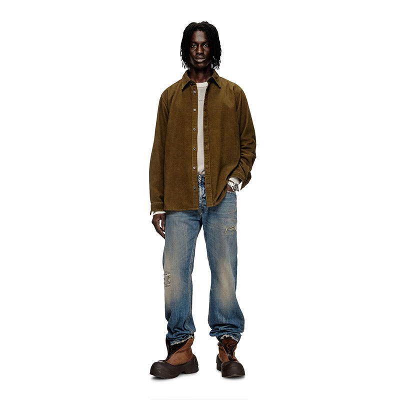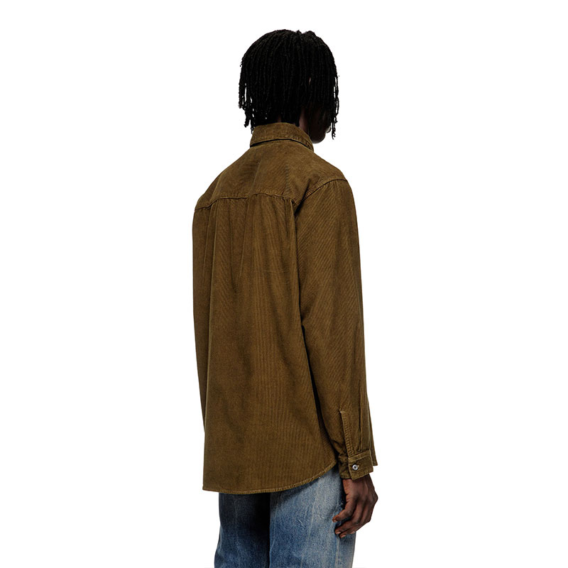 Diesel Men Cotton shirt with embroidery on the collar Green A193840AJFQ