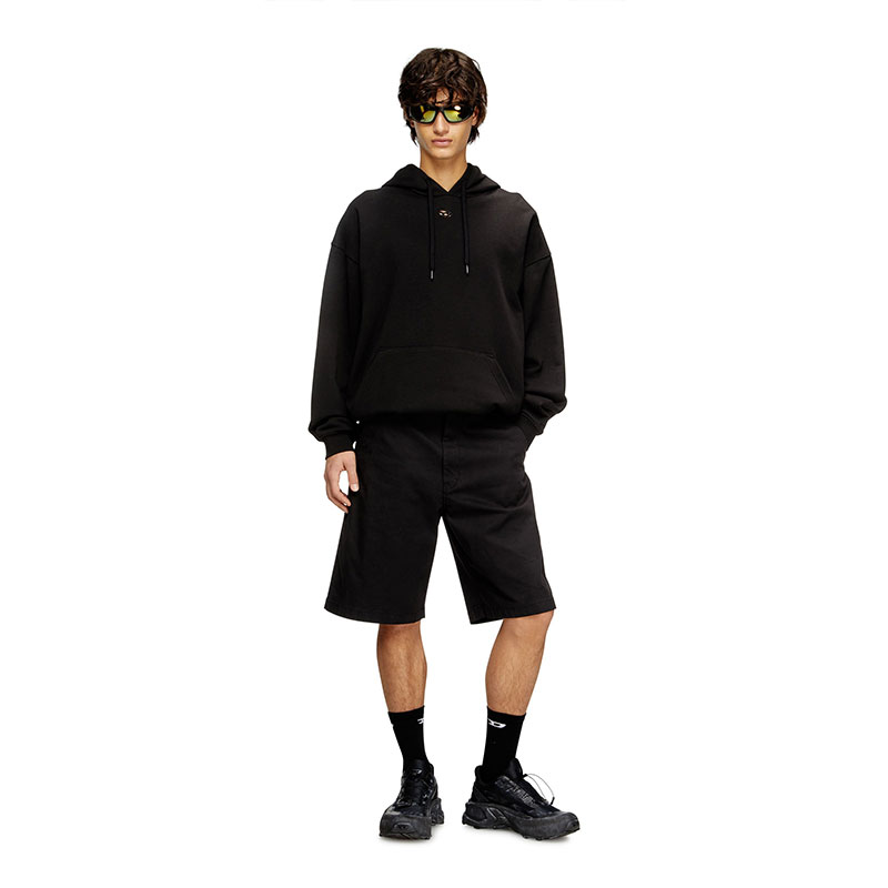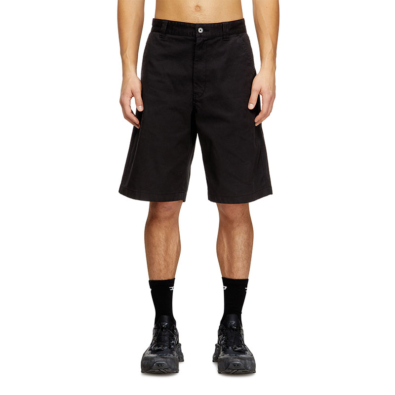 Short pants with a stonewash treatment. The composition is primarily cotton with a small percentage of elastane to ensure elasticity and comfort. The design features a branded four-hole button at the waist and a zip fly, front pockets and welt pockets at the back, with a pocket detail on the right side. These pants represent the perfect union between style and practicality.