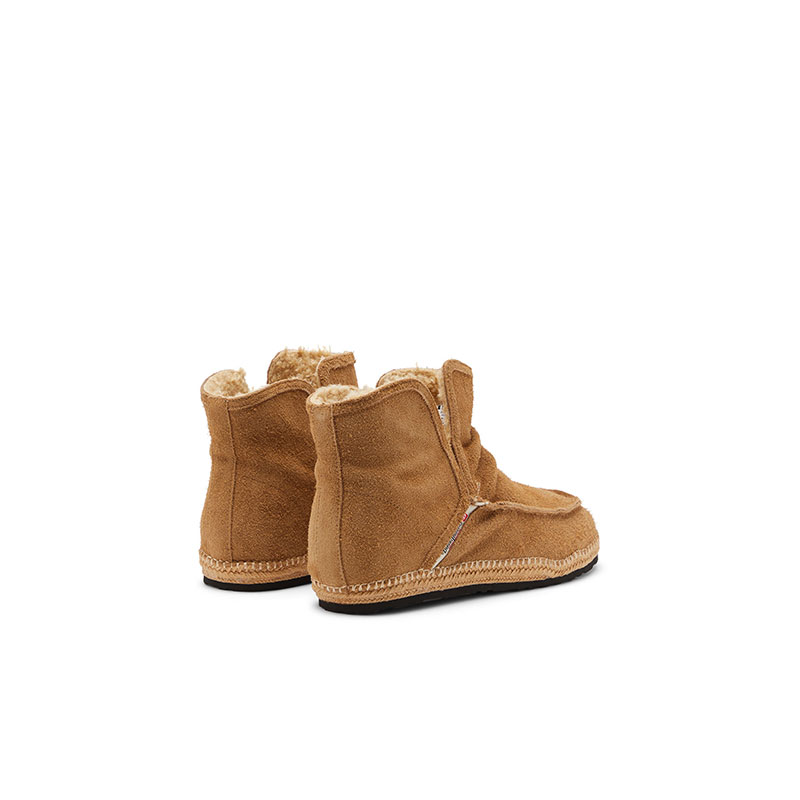 Leather ankle boots with Oval D logo on the inside. They feature a hairy-effect suede upper with a faux fur-lined interior. Rubber sole with rope insert on the side.