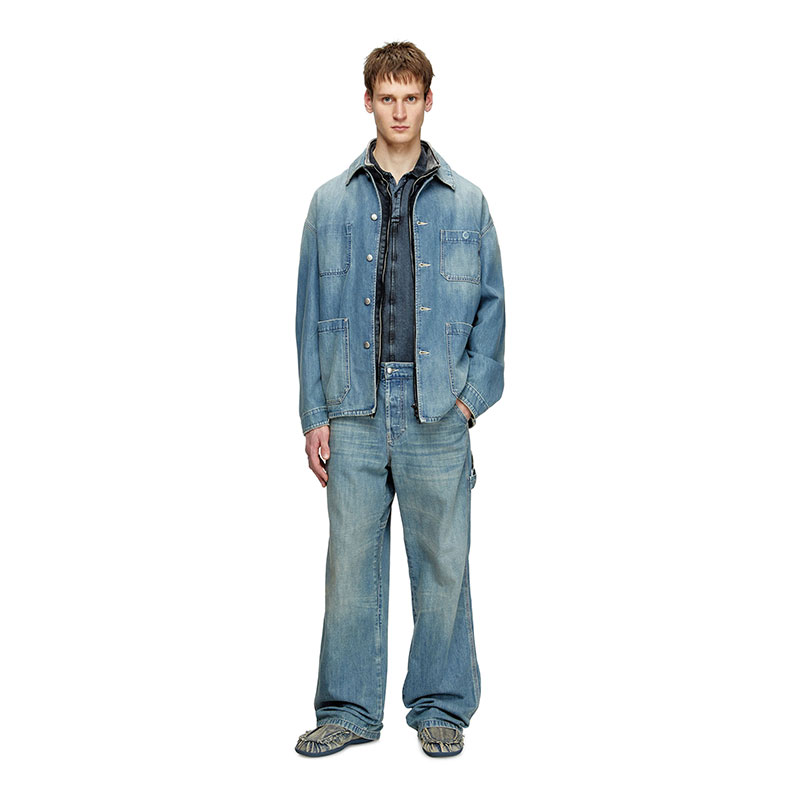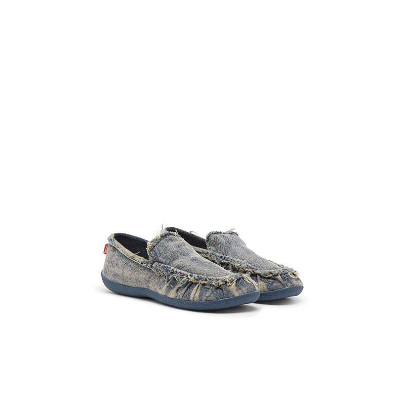 Diesel Men D-Shock-Distressed denim loafers Blue Y03710P0585