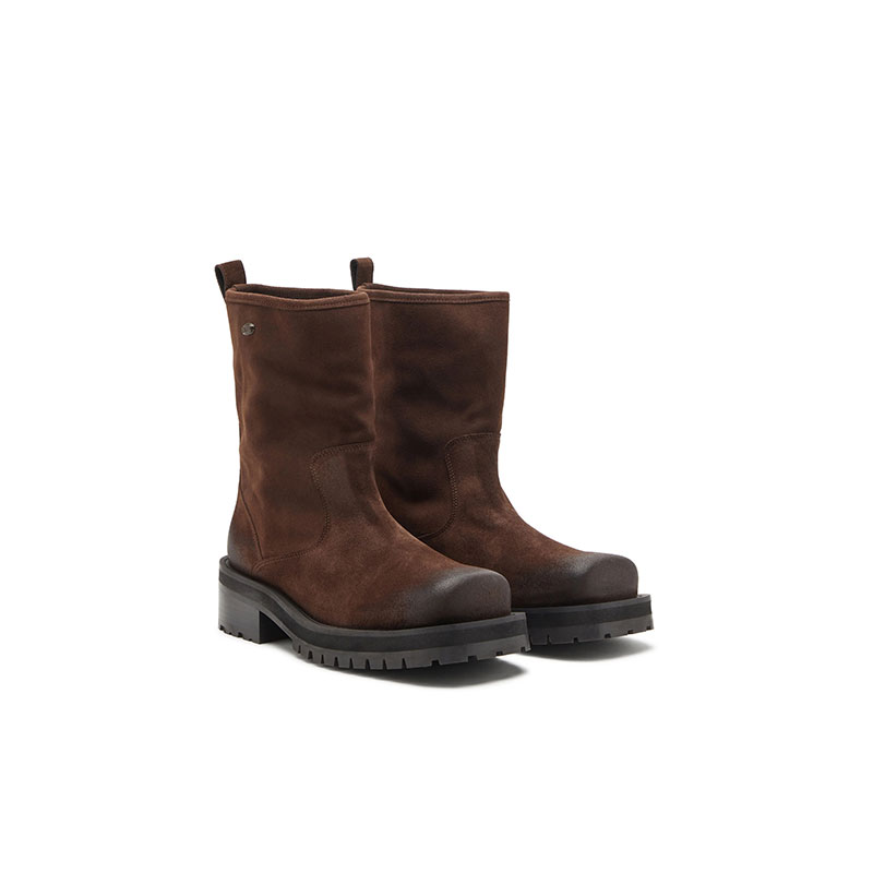 Boots with a robust and appealing design, made of leather for a durable finish. The thick, grooved sole ensures excellent grip, while the slip-on structure makes them easy to put on. A small metal detail with the Oval D logo adds a distinctive touch.